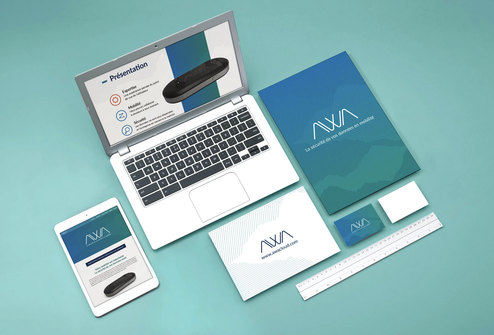 Refonte du logo "Awa", identité de marque, charte graphique déclinés sur support web et print